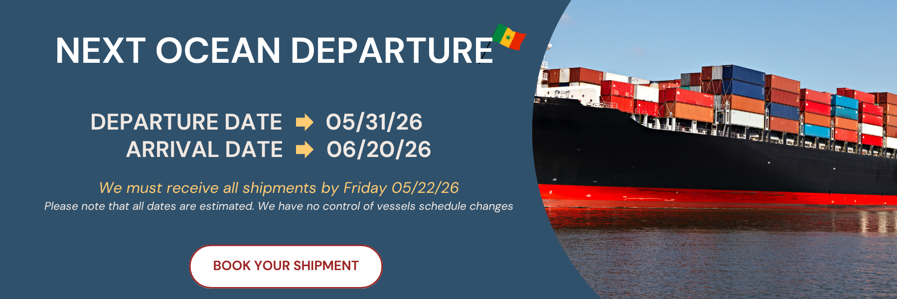 STEP 1: Check out our next ocean cargo departure and arrival dates.